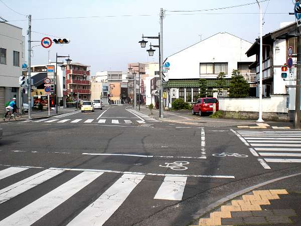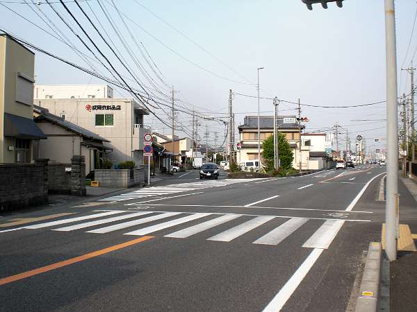 真っ直ぐな本通りを東進すると,左へ少し折れている所に来る。この左側に「