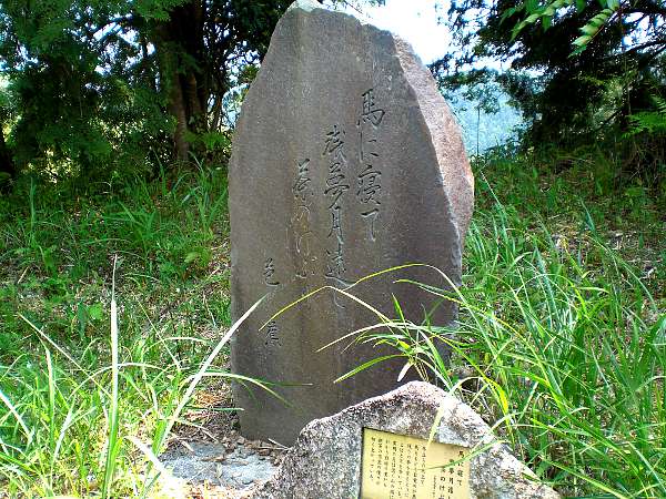 (左・左写真=12:21 遠景の最も高い山に「茶」の大文字が・・・) また,「夜泣石跡」「芭蕉句碑」「涼み松」「妊婦の墓」「白山神社」「鎧塚」と途中休憩場所には事欠かない。