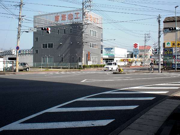 道なりに進んで行くと,国道一号線の[佐渡]交差点へ合流する(右・左写真=15:08)。