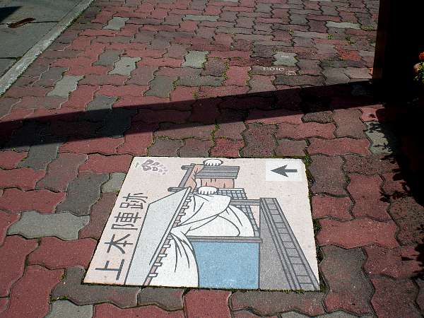 藤枝宿 上本陣跡」の絵タイルが歩道にはめ込まれている(右・右写真=9:16/2094歩)。