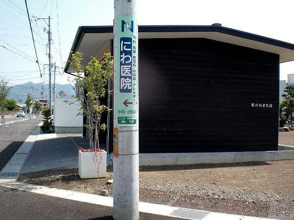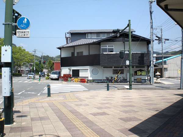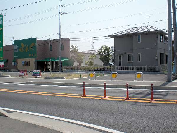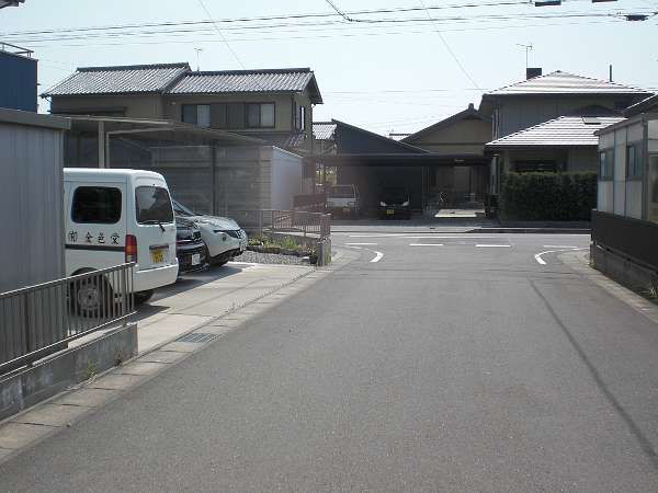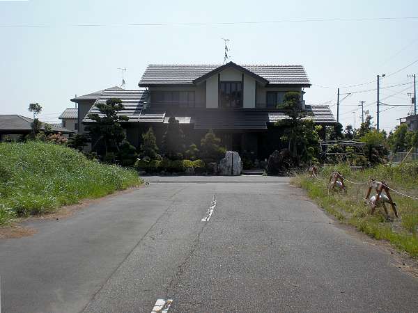 この辺り旧道は斜め(写真建物の右手方向)に国道を横切っていたようなのだが,国道に平行に区画整理されてしまっている(建物前へ)。