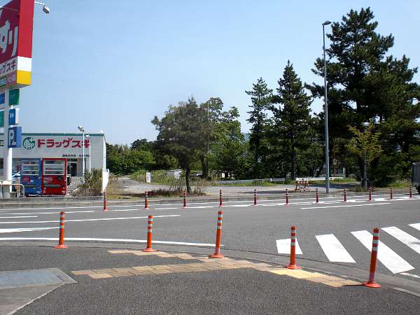 近づいて行くとコンビニの大きな駐車場前に信号がありY字路になっている。旧東海道は左手へ取る。