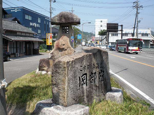 鬼島の建場(立場)」の石碑が有り,半鐘梯子と常夜灯が整備されている。ここは宿場間のお休み処であった。