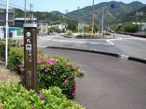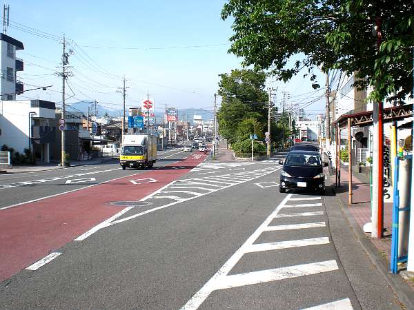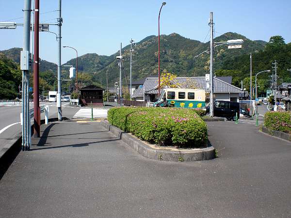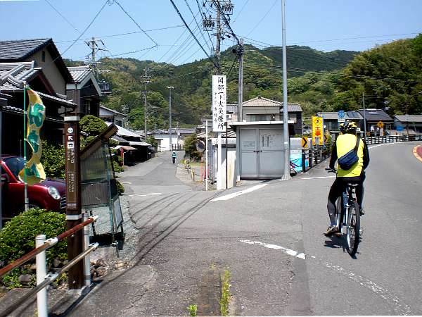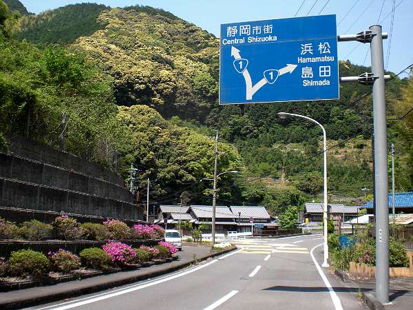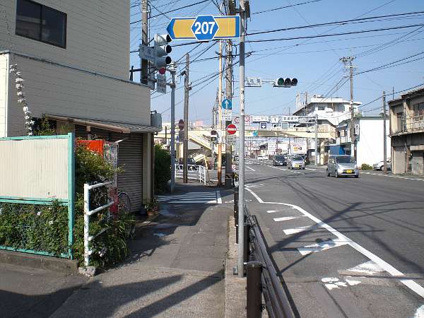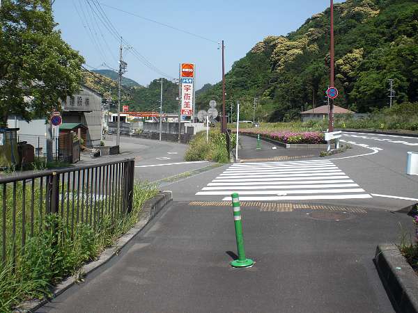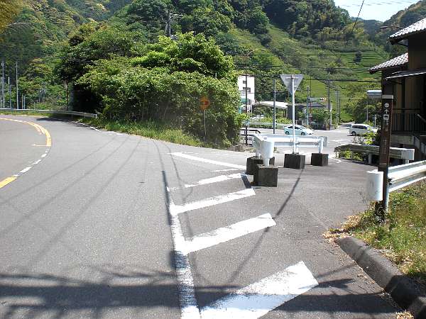 道なりに進んで行くと,県道から右手に外れて国道一号線へ下っていく分かれ道がある(右・右写真=12:17)。