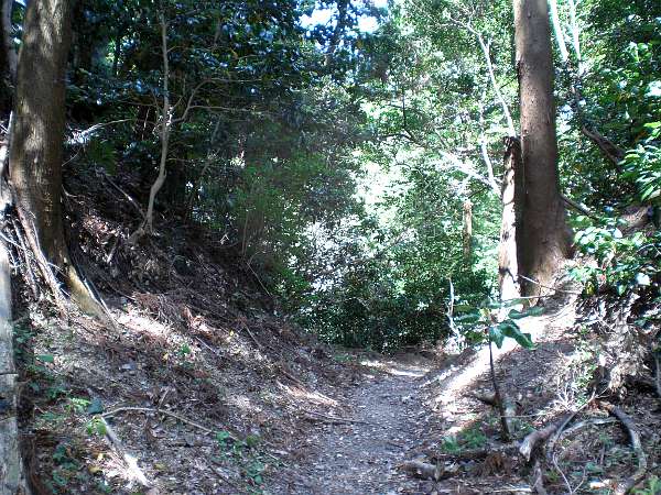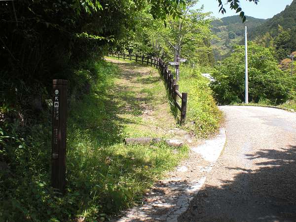 集落内の坂を登り切る辺りに,左手へさらに登っていく旧街道がある(右・右写真=12:31)。