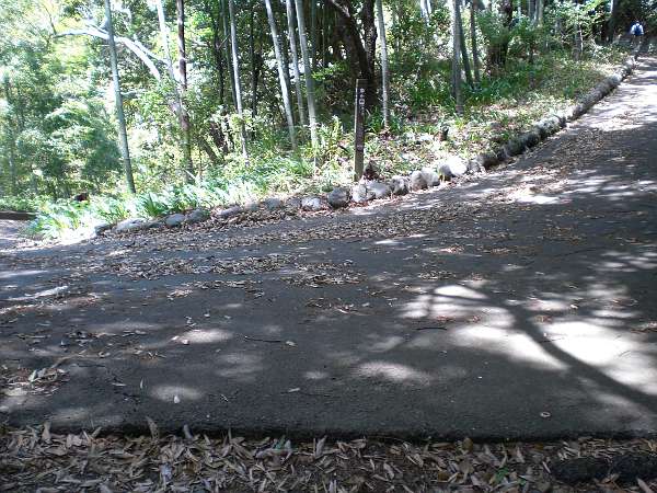 途中少し広い車道と合流してしばらくすると,道路が左へカーブしているように見えるところがある。