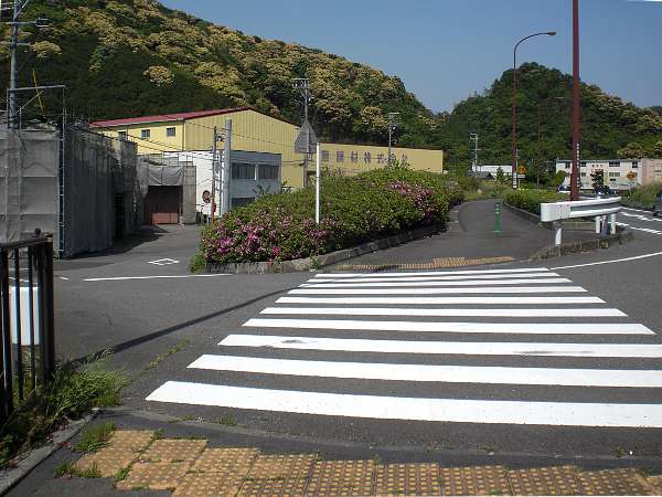 すぐにまた横断歩道のゼブラが見えてくるので,側道から外れて脇道へ入る(右・右写真=13:43)。