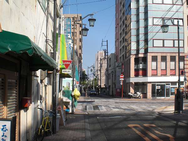 この先信号のある呉服町通りと江川町通りの交差点[呉服町]に至り,本日の終点となる。