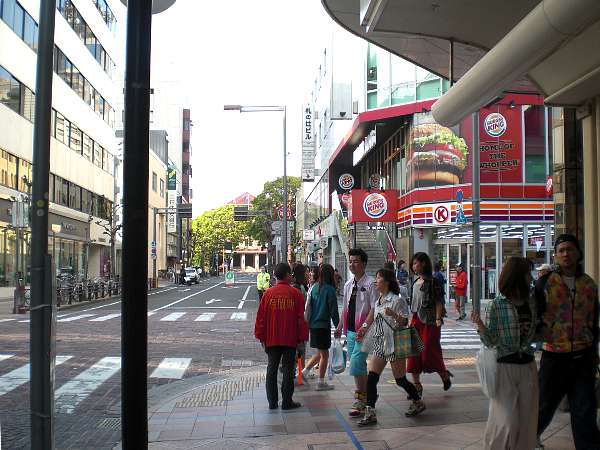 いくつか交差点を越えて直進していくと,4車線の広い道路「ときわ通り」を渡る。