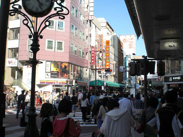 上伝馬交番から二軒目「洋品のニコニコヤ」の前に「