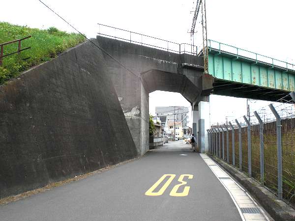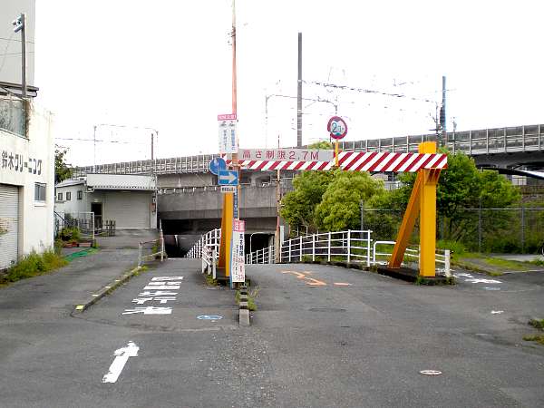 「後久橋」を渡って東海道新幹線沿いに進んで行くと,静鉄清水線のひときわ高いガードをくぐる(右・左写真)。