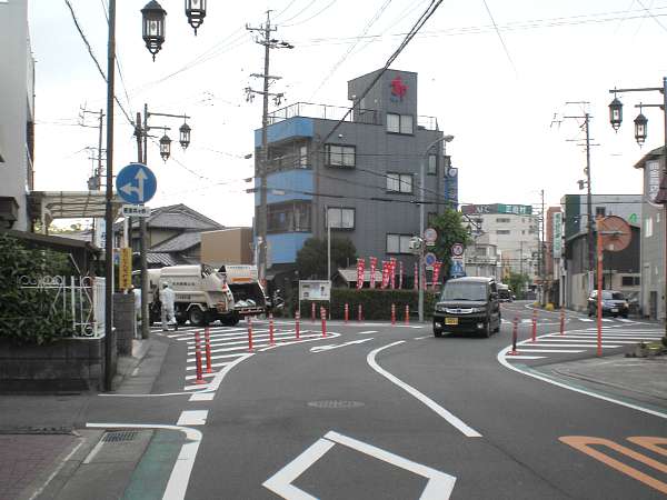 街道左歩道に「
