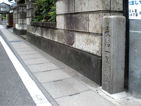 「長沼駅」あたりからまた集落に入る。150mほど行った右側,住宅の塀と電柱に挟まれるように「