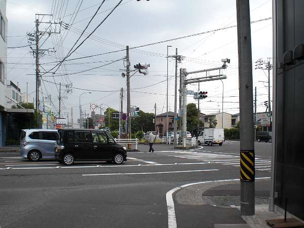 通りをしばらく行くと,少し右カーブした先に国道一号線と交差する[春日一丁目]信号がある。