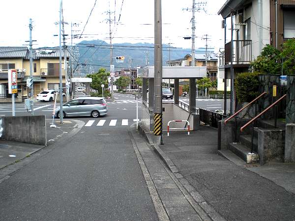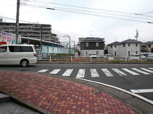 実は立体交差で,下には車道が通っている。どうもここは枡形であったところを高架にしたようだ。