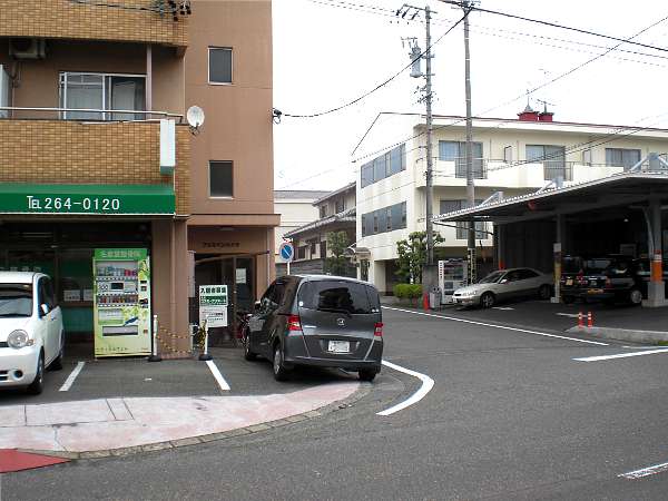 一つ信号を越え,次の丁字路で左脇道へ入る。向こう角にタクシー会社(うど交通)がある(右・左写真=9:38)。