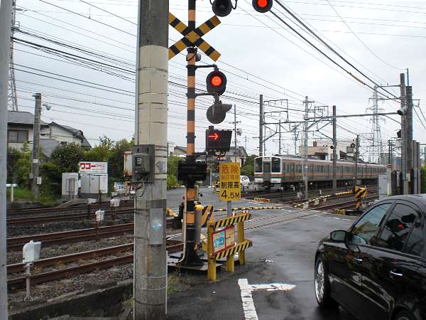 まもなく新幹線と離れた東海道線と静鉄の踏切を渡る(右・左写真=10:47)。