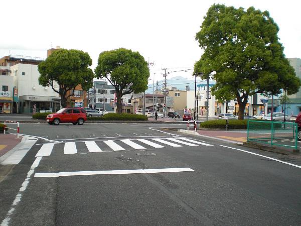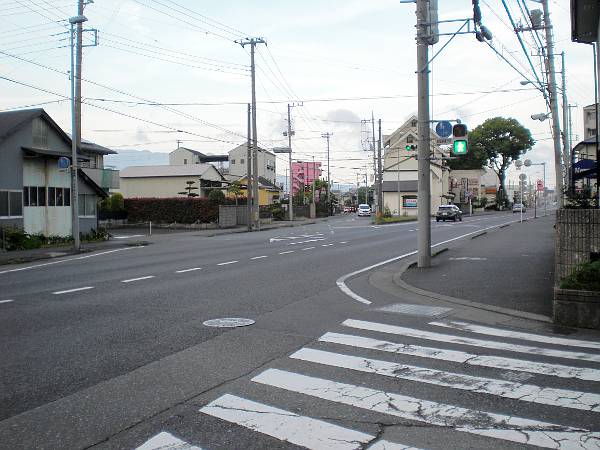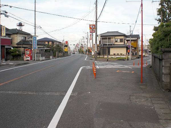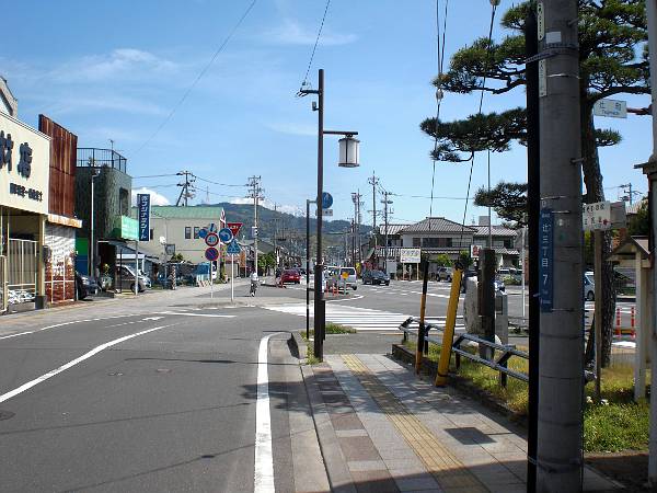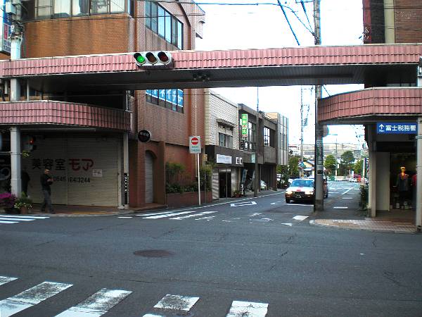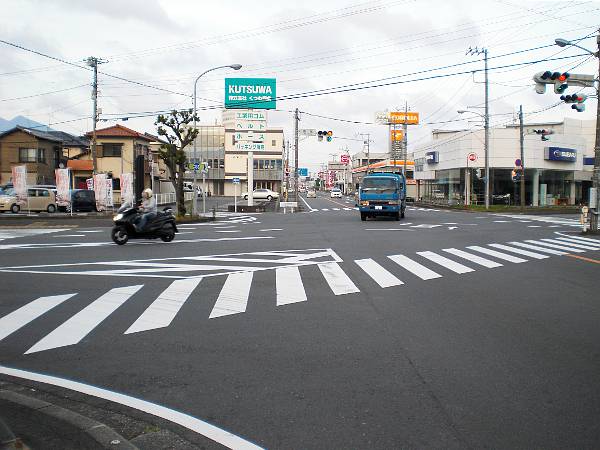 市街地をくねくねとしながら進んで行くと,少し広い通りに交わる(左・右写真=17:23)。JR東海道線「富士駅」に通じる駅前通りである。