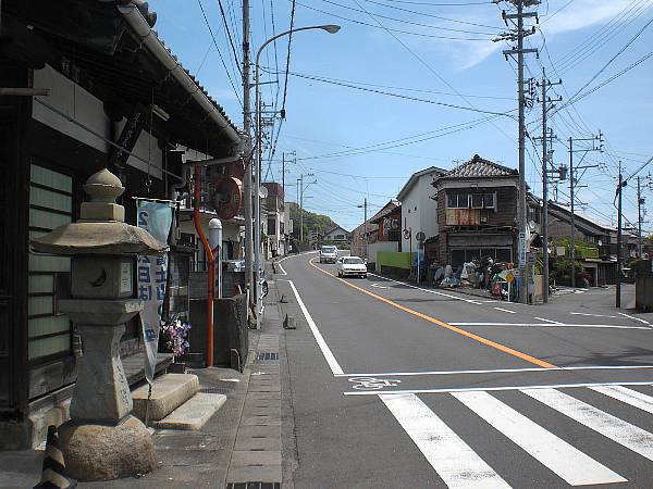 2キロほど行ったところに「延命地蔵尊」という,前に灯籠のある建物がある。ここから右手の脇道に入る(右・左写真=10:20)。