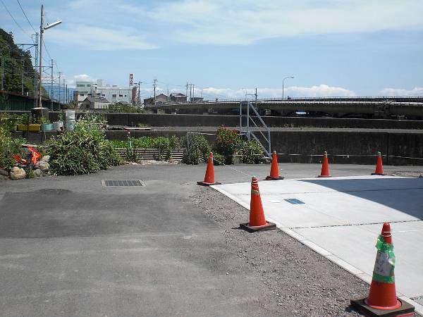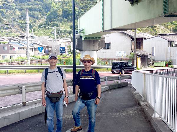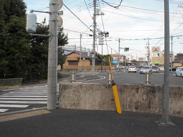 さらに,突き当たりには国道の側道に上がる小橋のような柵のある通路が見える。そこを通って国道一号線に復帰する(左・右写真=10:27)。