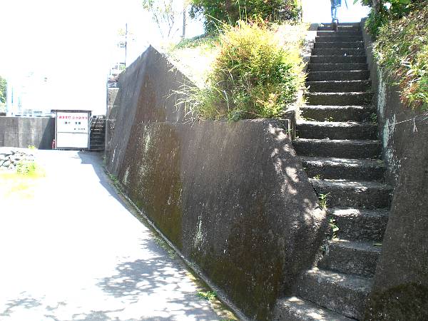 突き当たりを右手にUターンするように迂回すると,旧一号線への石段がある(右・左写真=11:24)。
