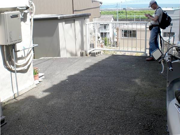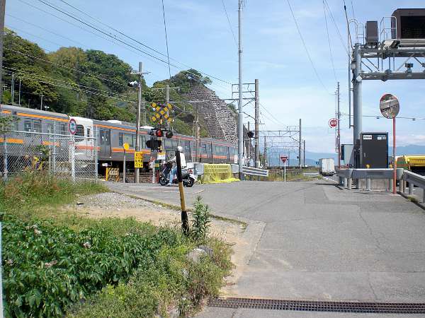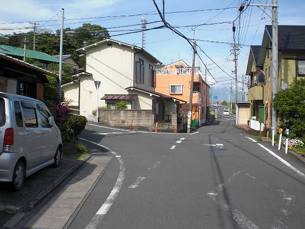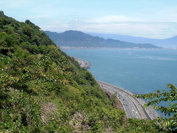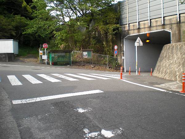 東名高速がトンネルから出て来る辺りに,パーキングがあり,ここからは右手の道を車や単車を避けながらの下り坂となる。(左・右写真=12:09)