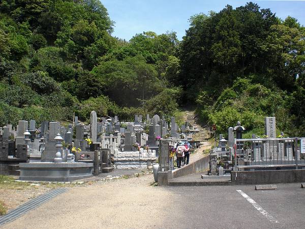 その先にはお墓があり一瞬行き止まりかと迷うが,よく見るとお墓の中を突っ切ってさらに小道が登っているのが見える(右・右写真=11:43)。