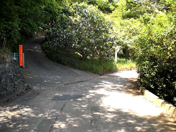第一段階登り切ると,平坦な道に出る。5,60m先に右に登って行く真っ直ぐな舗装路があるのでそちらに入る(右・左写真=11:39)。