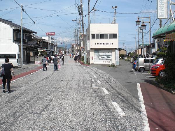 その路地に入ったところ,にわかには信じがたい街道である(左・左写真=13:10)。