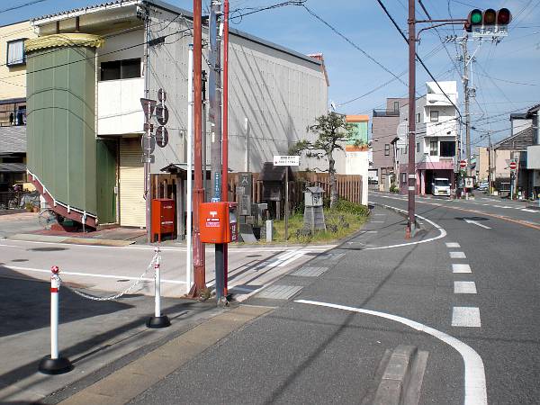 その少し手前に,これも旧一号線であろう左へ逸れていく車道と,さらにその手前をほぼ直角に左へ折れる旧東海道がある(左・左写真=11:16)。