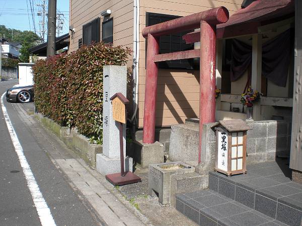 少し左(北)にカーブしながら10分あまり行くと,右側に赤い鳥居と石碑がある祠が見えてくる。「