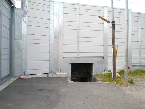 左手の道を進んでくると奇妙な四角い穴の開いた壁にぶつかる。(右・右写真=15:37)この辺りは新幹線とほぼ高さが同じ土地で無理矢理掘り下げたトンネルなのである。