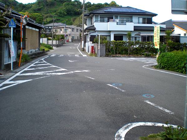 直線道路を進んでくると十字路に差し掛かる(右・右写真=16:16)。変則的なので少し迷いそうになるが右斜め前方へと進む。