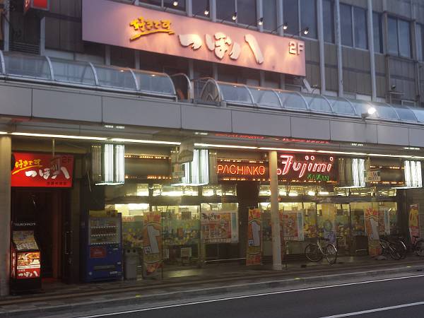 ここを右折すると吉原宿の中心街である。道路左側に「つぼ八」の看板(パチンコ富士見会館)が見えてくる(右・右写真=18:19)。これが「