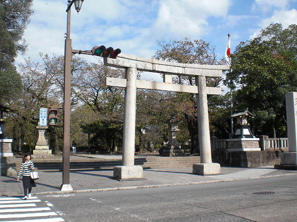 三嶋大社の鳥居をくぐり、旅の無事をお祈りする。(右・左写真=10:04) 実は、最近人里に熊出没のニュースが多く、恐がりの私は祈らずに居られなかったのである。