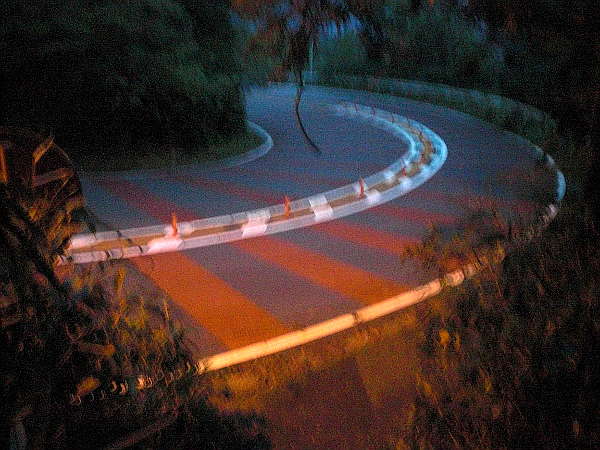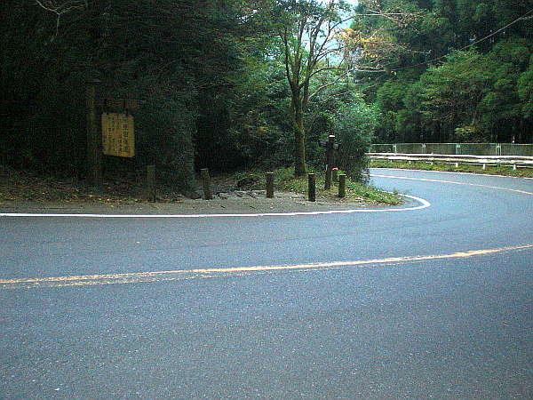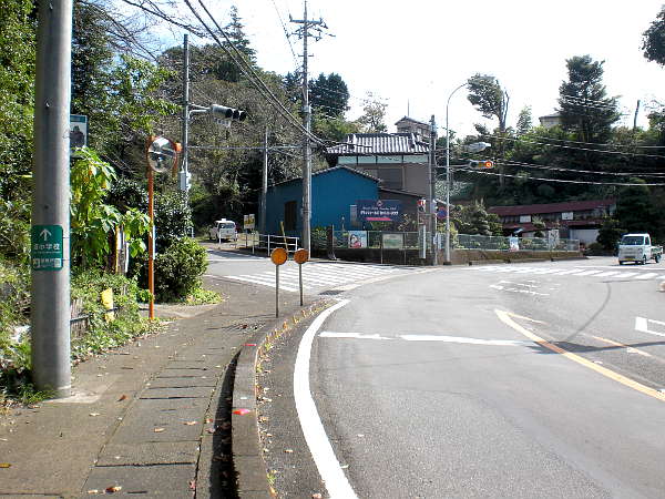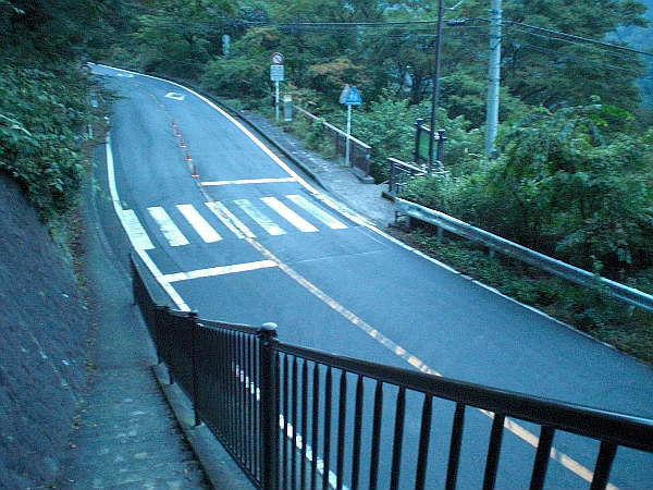横断は急カーブが有り非常に危険な為、ガードレールに沿って少し上った所に横断歩道がある。