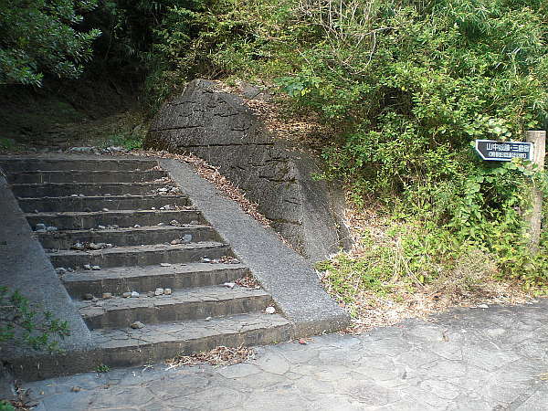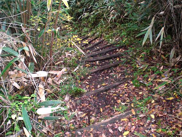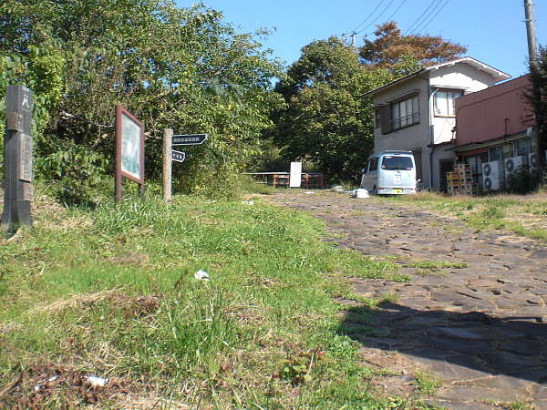 挟はさみ石坂」と名の付いた旧街道入口は、ちょっと進入するのをためらうほど、狭く急な階段になっている。