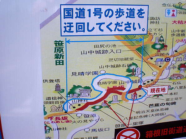 もう一度迂回路図を見ながら、実際の街道を歩いた気分を味わった。
