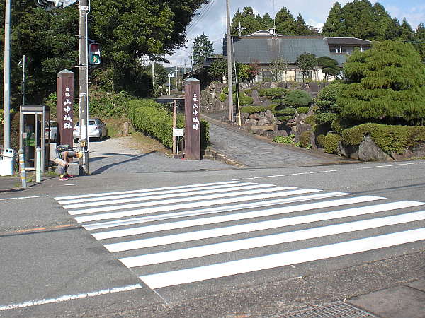 旧東海道は、ここでもう一度国道一号線と直角に交差し、山中城跡方面へ向かう。ここが旧街道の江戸側出口。(左・左写真=13:16)