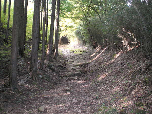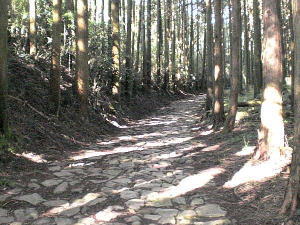 石畳を上りきると旧国道一号線と交叉する。「史跡