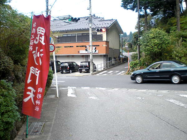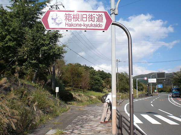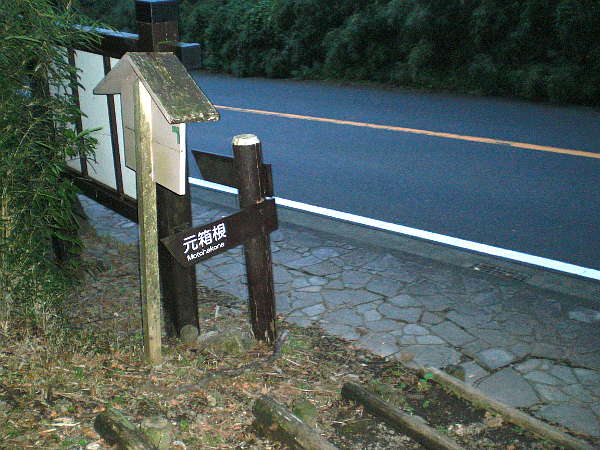 箱根峠方面から箱根新道へ入るランプウェイの下をくぐり、箱根関所方面から来る国道が、箱根新道へのランプウェイと正に分岐する辺りの右側道に[