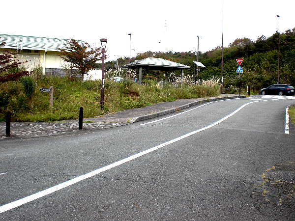 ドライブインの駐車場を通って元の位置に戻る。残念ながらこの先も歩行者通行禁止となっていた。(右・左写真=12:52)