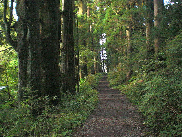 さらに車道を数メートル、山側に立つ二本杉の大木の足元に「