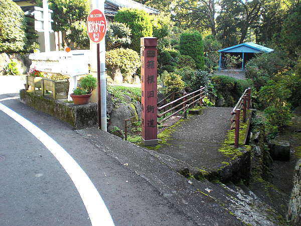 小田原のかまぼこ・ひものと書かれた食事処が分岐点に有ったがちょっと早いのでパス。頼朝の馬が石橋に蹄痕を付けたとされる「