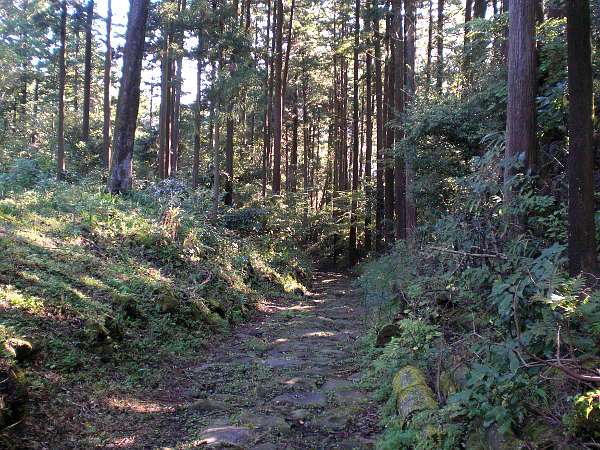 この辺りの石畳は江戸時代初期のまま保存されているそうだ。杉並木は森と一体化していて整備した形跡は見当たらない。