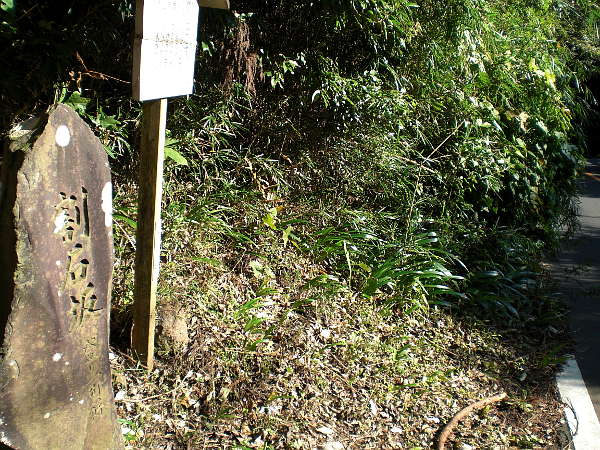 住宅が建っており立て看板のみがブロック塀沿いに建てられている。