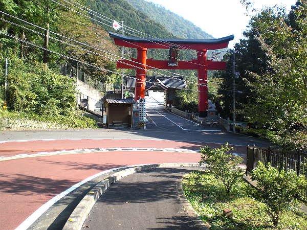 箱根口IC方面への三叉路を通過。(右・右写真=11:11) ここから100m以内の左側、三叉路(秋万酒店)少し奥に「