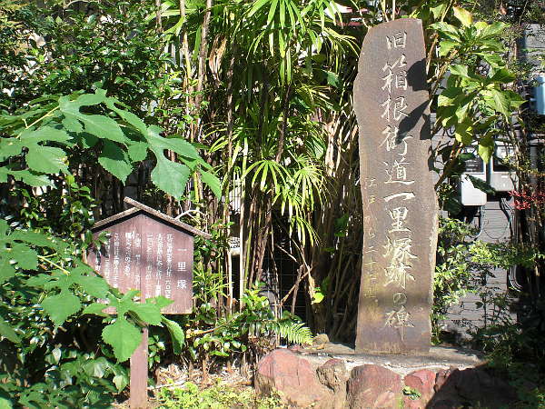 湯本茶屋の一里塚跡」がある。(右・左写真=9:42)
