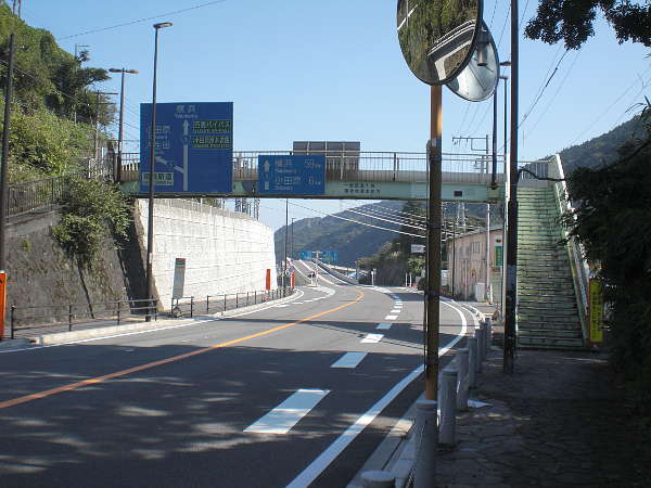 右に急カーブした後、緩やかに左へ曲がりながら国道に合流する。(右・右写真=16:05)