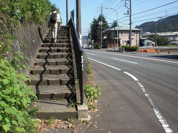 歩道は階段を上がる。その下の車道脇を歩けなくはないが、今日は未だ足の筋肉をそれほど使っていないので上へ・・。(左・左写真=10:47)